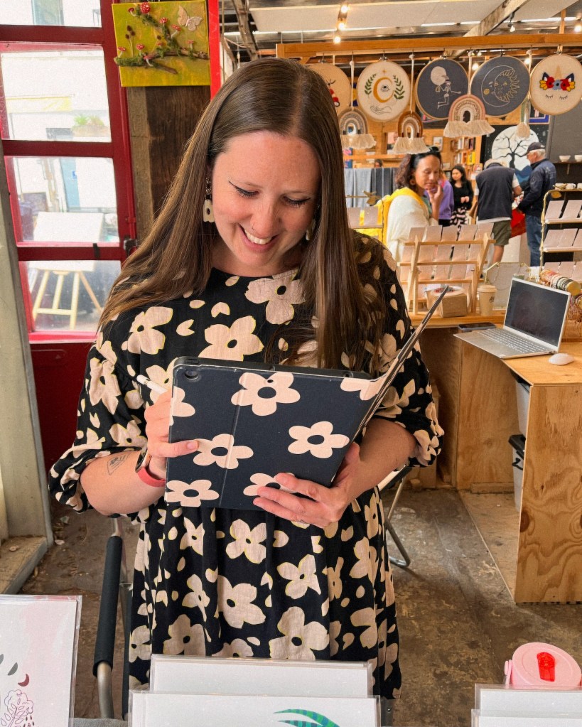 I’m happiest with a drawing or clay tool in my hand, 1960s music or a true crime podcast in my ears, and a cup of coffee nearby. When I’m not making, I teach primary school visual art and work on my passion project, Type One Writers — a worldwide pen pal club for people living with Type 1 diabetes.