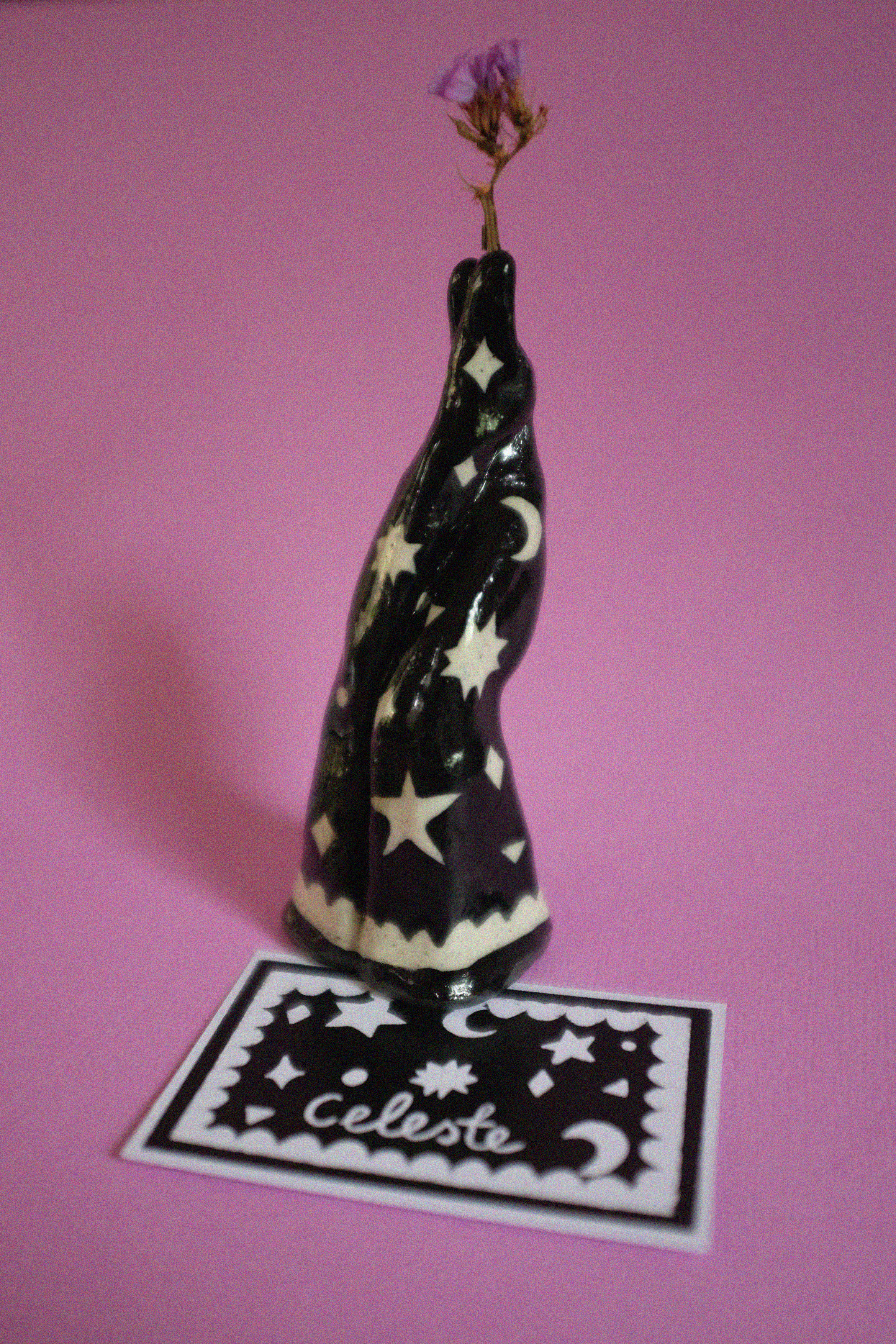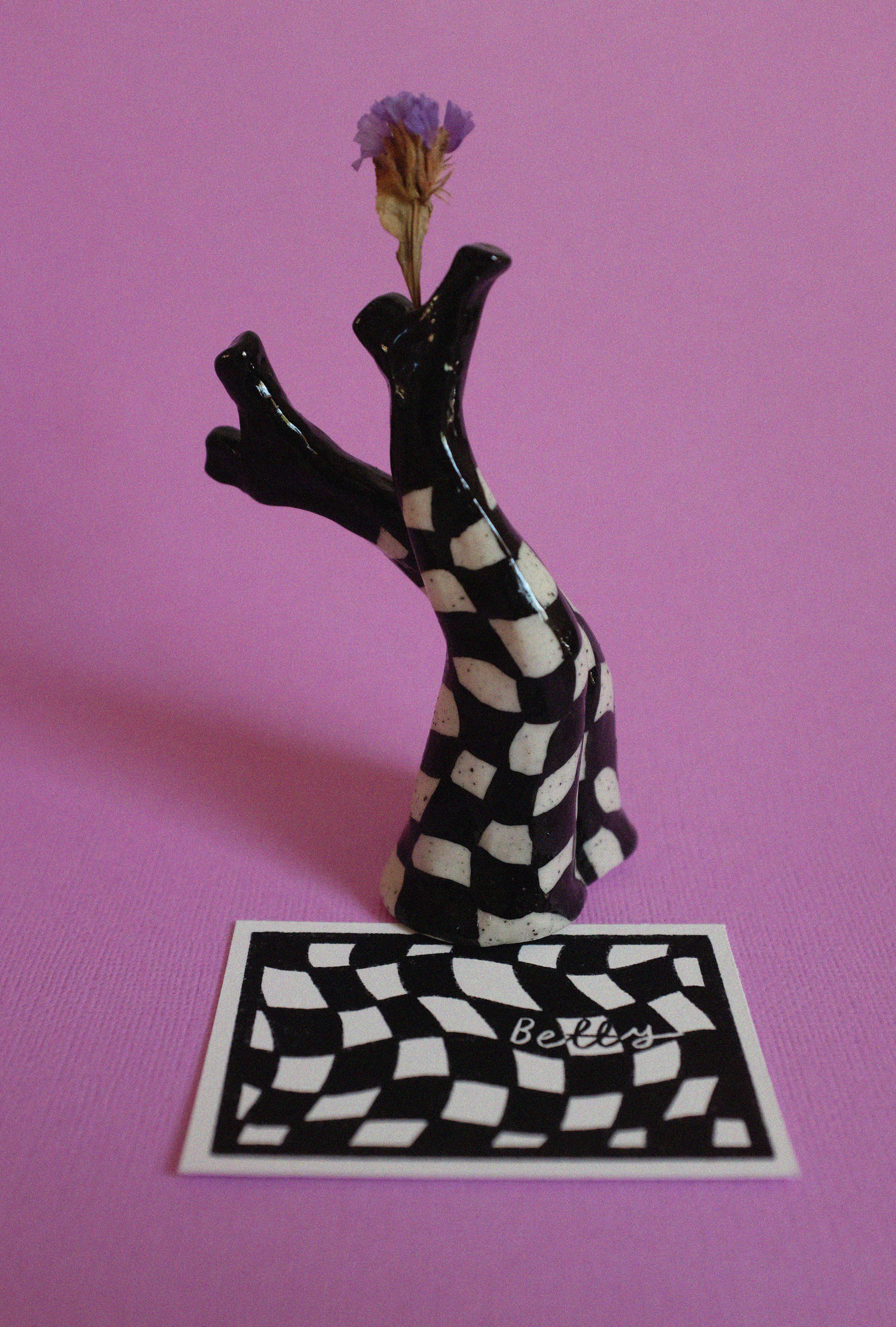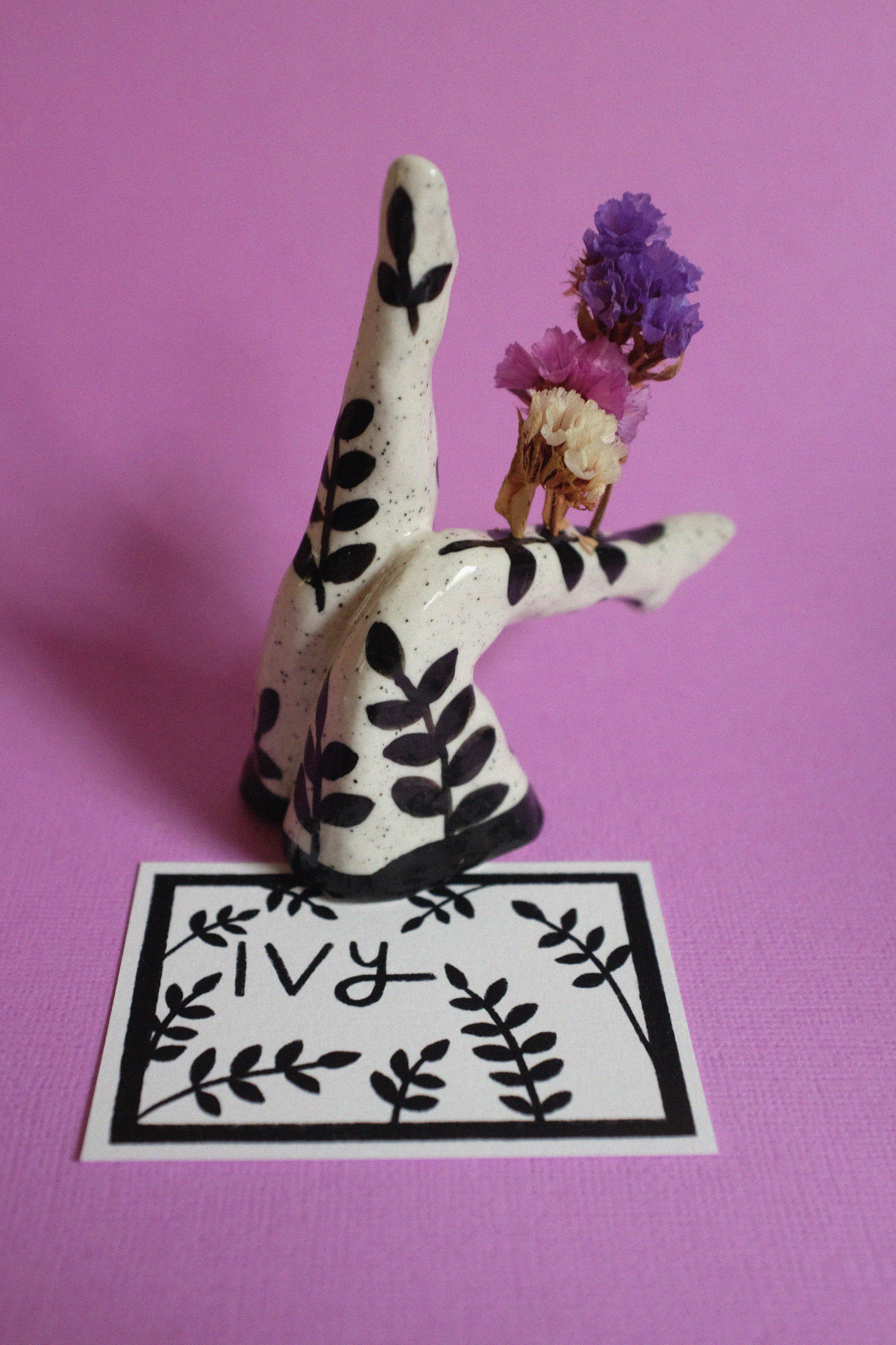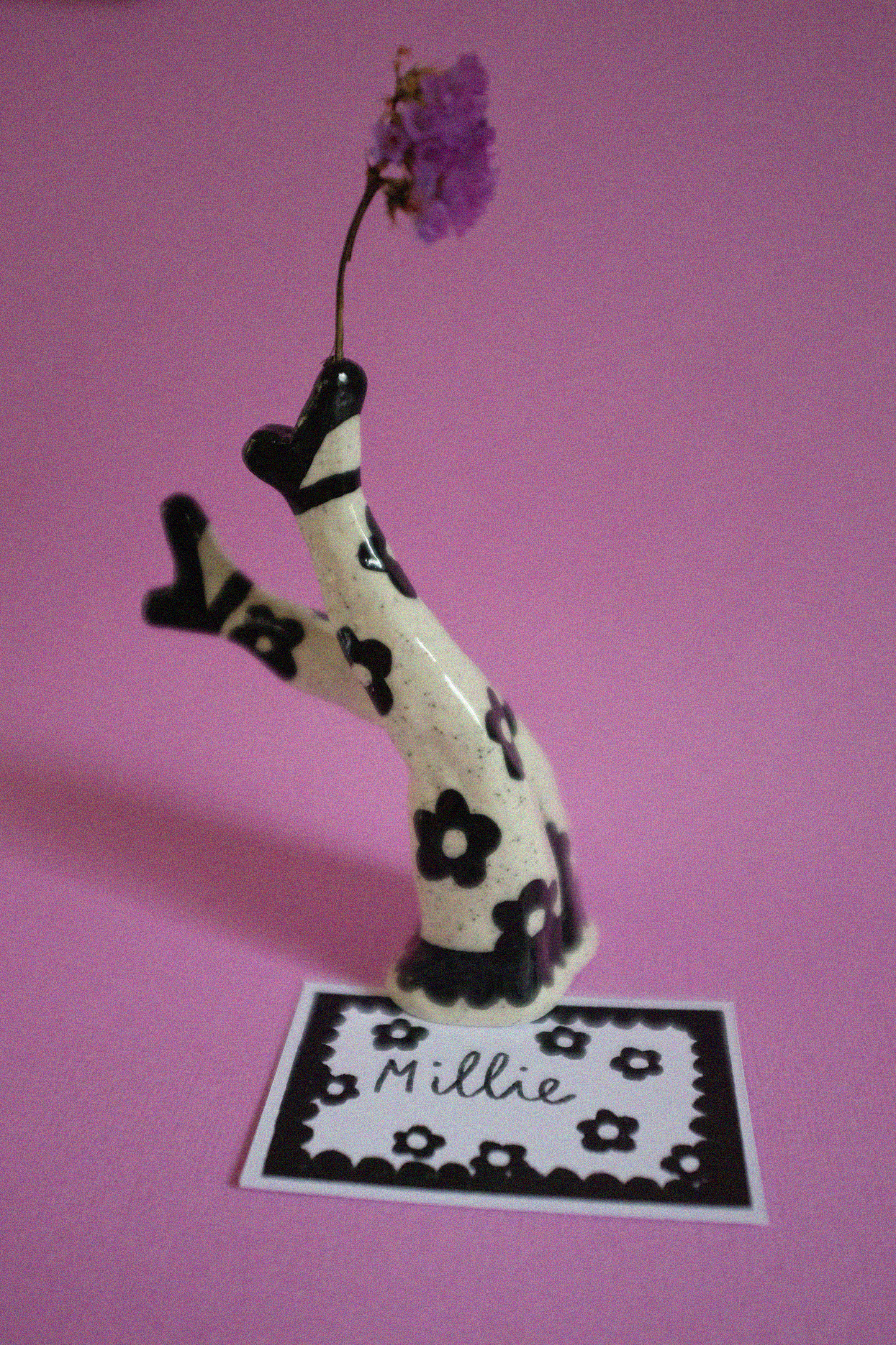 These ceramic leg bud vases are functional artworks, hand sculpted from stoneware clay and hand painted with unique designs inspired by flowers, tattoos, and stockings. They can hold a single bloom, incense, or jewellery, or simply exist as beautiful sculptural objects. Every pair of legs is one of a kind, has its own name, and comes with an illustrated name card, making each piece a small, collectible character.