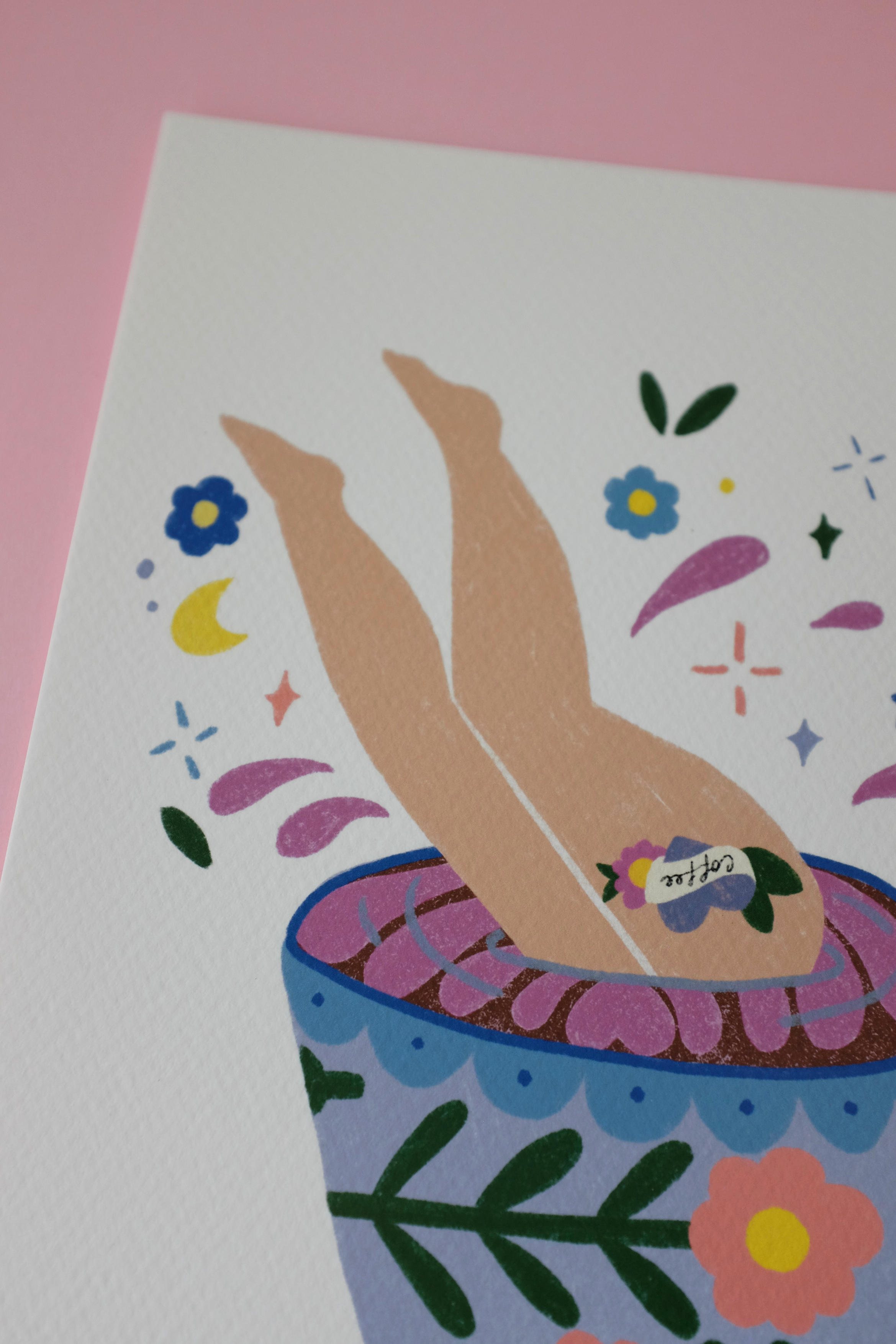 My illustration work is playful and feminine, inspired by flowers, vintage fashion and lifestyle, and a sense of softness and humour. A recurring focus throughout the work is a meticulous attention to female legs, treated as expressive, characterful forms that celebrate femininity, style, and individuality. Decorative details and nostalgic references balance elegance with playfulness. Each piece is created with an intuitive, joyful approach, resulting in illustrations that feel both timeless and contemporary, and that celebrate feminine energy with warmth and wit.